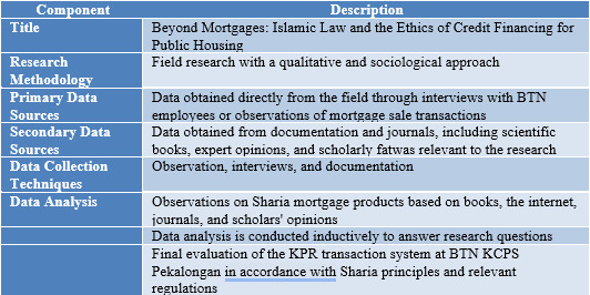 This type of research is field research, which outlines and describes phenomena regarding the situation. In this case, the kind of research is qualitative. This research can also be considered sociological research because it is carried out directly in the field . Primary Data Source Obtained directly in a personal way by the source. This method involves in-person interviews, via email, or other means of communication. Primary data is generally obtained directly personally. In this research, preliminary data was obtained directly from the field or through interview findings with one of the BTN employees or observations observing the natural occurrence of the mortgage sale transaction. Secondary Data Sources Defined data that is combined, worked on and presented by other parties such as the mass media, research findings, or reports that have been carried out. In this research, secondary data was obtained through the application of documentaries and journals, namely scientific books, expert opinions, and scholarly fatwas that match the topics in the research .
