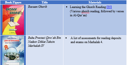 [34] K. Anam dan M. Ibrahim, Al-Qur’an Metode Waqof Idl-Thirori Juz 5 & 6 Marhalah 3. dalam Buku Serial Tahsin. Solo-Indonesia: LPPT MTA, 2016. [Online]. Available: https://tokomta.com/produk/al-quran-metode-waqof-idl-thirori-juz-5-6-marhalah-iii/