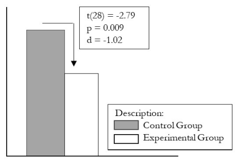 Based on the results of the independent sample t-test that can be seen in figure 2, it obtained a tvalue= -2.79 with df= 28 and p= 0.009 (<0.05). The tvalue (2.79) > ttable (2.048), which implies Ho is rejected and Ha is accepted. Thus, the results of the independent sample t-test analysis showed that there was a significant difference in sibling rivalry between the experimental and control groups after Benthikintervention (t[28]= -2.79; p< 0.05).