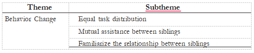 Another finding that reinforces the value of benthik games in resolving sibling rivalry is reflected in in-depth interviews with students' parents who explain changes in attitudes after the intervention with siblings. From table 6 several subthemes found.