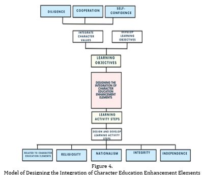 The steps taken in integrating the elements of the character education are shown in Figure 4.