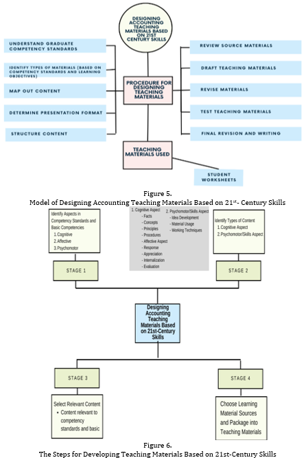 In addition, the procedure for designing the teaching materials includes, 1) understanding the graduate competency standards; 2) identifying the types of materials based on the competency standards and learning objectives; 3) mapping out the content; 4) determining the presentation format; 5) structuring the content; 6) reviewing source materials; 7) drafting the teaching materials; 8) revising the materials; 9) testing the teaching materials, 10) final revision and writing. The teaching materials used in skill-based accounting education are student worksheets.