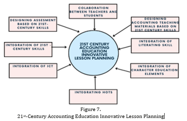 In reality, the development of accounting lesson plans centered around 21st-century skills encounters several challenges. Research findings by Wardani (2020) shed light on the obstacles faced by educators in constructing Skill-Based Lesson Plans (RPP) specifically aligned with the 4C framework. The study has revealed that several key impediments exist, including: firstly, a tendency among teachers to adapt pre-existing RPPs to their school's unique conditions rather than crafting fresh, skill-centric plans; secondly, challenges in terms of the components of structuring 21st-century skill-based RPPs, the criteria for evaluating such lesson plans, selecting appropriate teaching models, and a noticeable lack of educator knowledge regarding 21st-century skills; thirdly, an analysis of these lesson plans has highlighted that certain 21st-century skills within the 4C framework are inadequately represented or entirely omitted, ultimately affecting their ability to effectively facilitate student learning. These research findings underscore the fact that there are areas within the 4C framework that remain underrepresented or unaddressed in RPPs, particularly within the granular aspects of lesson planning.
