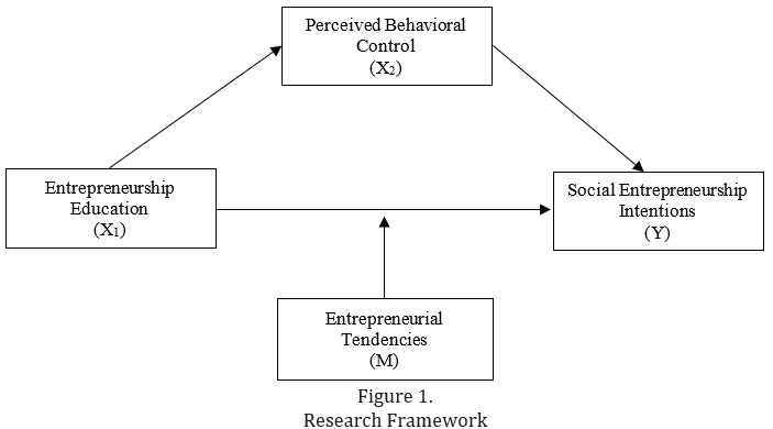 To the extent that individuals feel they have control over behaviors and actions associated with social entrepreneurship, they are likely to have stronger intentions or a greater desire to engage in social entrepreneurial activities (Galvão et al., 2018); (Duong, 2022); (Lopez et al., 2021). In other words, when individuals feel that they have the ability and authority to overcome obstacles, take necessary actions, and achieve goals in the context of social entrepreneurship, they are more likely to be willing to realize their intentions to become social entrepreneurs (Karimi et al., 2015); (Paray & Kumar, 2020); (Arkorful & Hilton, 2022). An increase in perceived behavioral control may encourage the growth of more social entrepreneurs who have stronger intentions to create a positive impact in society through their social entrepreneurship efforts (Bux & Honglin, 2015); and (Çolakoğlu & Gözükara, 2016). Therefore, it can be concluded that entrepreneurship education and perceived behavioral control can influence social entrepreneurial intentions, which can be moderated by entrepreneurial tendencies.