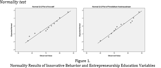 Based on the results carried out using (Q-Q plot) it can be seen that innovative entrepreneurial education data (Y) most of the data patterned around the diagonal line to the upper right, on this basis proves that the distribution of data is normally distributed both from innovative and educational behavior variables entrepreneurship.