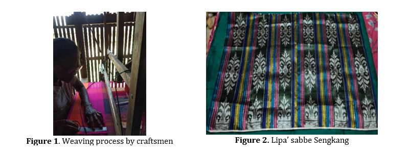 Furthermore, apart from the tette' technique, the lipa’ sabbe motif can also be made using the sobbi' or prying technique. The sobbi' technique, The sobbi' technique, which is also known as the ikat process (Buckley, 2017), is specifically designed to print motifs with relatively small sizes. The result of this sobbi' technique produces logo motifs, with various shapes. It can be said that the logo motif is above the intersection of the warp and weft threads. Based on the results of interviews regarding the making of logo motifs, the informants explained that : the creation of a logo motif must first be able to imagine the basic shape or pattern, then certain estimates and calculations are made so that the resulting motif is balanced, neat and proportional to the basic motif (not too big and not too small). Meanwhile, to create a new motif requires deep reflection, therefore the obtained motif has more meaning and selling value because of its novelty.
