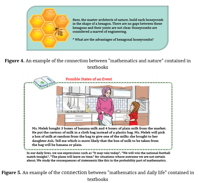In conclusion; Associating mathematics with daily life, science, nature and art in schools, explaining its contributions to humanity, cultural ties and telling its historical story will positively affect students' mathematical thoughts and enable students to learn mathematics more meaningfully. If we cannot introduce students to science, nature, art and real problems in this life in mathematics textbooks while providing mathematics education, we will continue to raise people who cannot see the background of the problems with the current education system and do not know what the purpose of the problem they solve is.