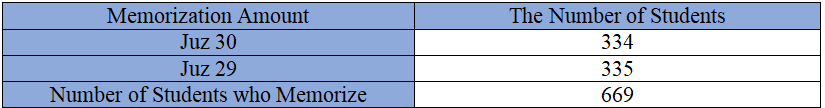Table 1. Data on Achievement of Memorization of the Qur'an at SDIT Muhammadiyah Al-Kautsar Gumpang Kartasura