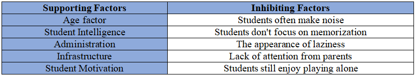 Based on the data in table 2 above, there are factors that affect the memorization of the Qur'an, both supporting and inhibiting. This has become commonplace because all things have positives and negatives, including factors related to the theme of this study.