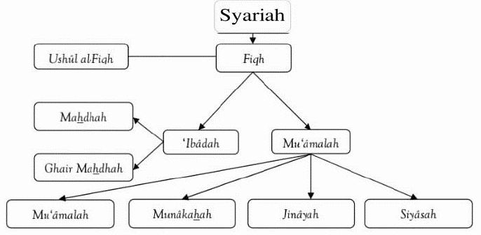 Based on figure 1 above, it can be understood that the scientific chart in the fiqh paradigm includes what is also part of the ushul fiqh is worship and muamalah. Some worship is mahdhah and some is ghairu mahdhah. While muamalah can be in the form of muamalah, munakahat, jinayat, and siyasah.