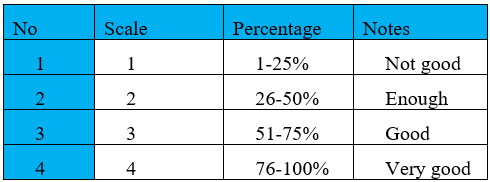 In analyzing the data, the researcher did it in 2 stages: First, qualitative data analysis to compile module material from books, supporting literature, and notes or comments from experts and practitioners. Second, quantitative data analysis is part of the module validation sheet instrument to calculate the percentage of scores obtained from the validation test. Both of these are done to produce a tested module design. The results of the validation test are considered reasonable if they reach a percentage of 75% according to the 1-4 scale division of the quantitative assessment as follows :
