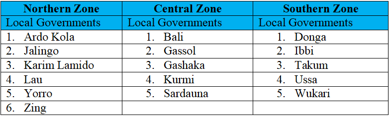 Table 1. Showing Taraba State Geo-Political Zones and Local Governments