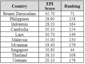 Table 1. EPI Scores of Southeast Asian Countries in 2022