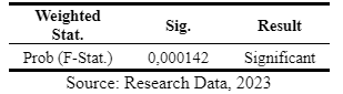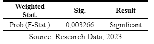 Table 9 and Table 10 display the results of the F-test, with the respective F-statistic probability values of 0.003266 and 0.000142. From these numbers, it can be stated that the independent variables used in the research have a significant influence on the dependent variable as a whole.