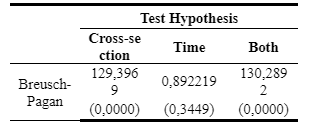Based on the generated results from models I and II, it can be observed that the probability of the Random Cross-section is greater than the α value (α = 0.05). Therefore, the conclusion is that the most appropriate regression model is the Random Effect Model (REM) based on the Hausman Test. Consequently, the research will proceed with the Lagrange Multiplier test.
