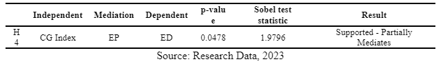 H4:Environmental Performance mediates the relationship between Corporate Governance and Environmental Disclosure.